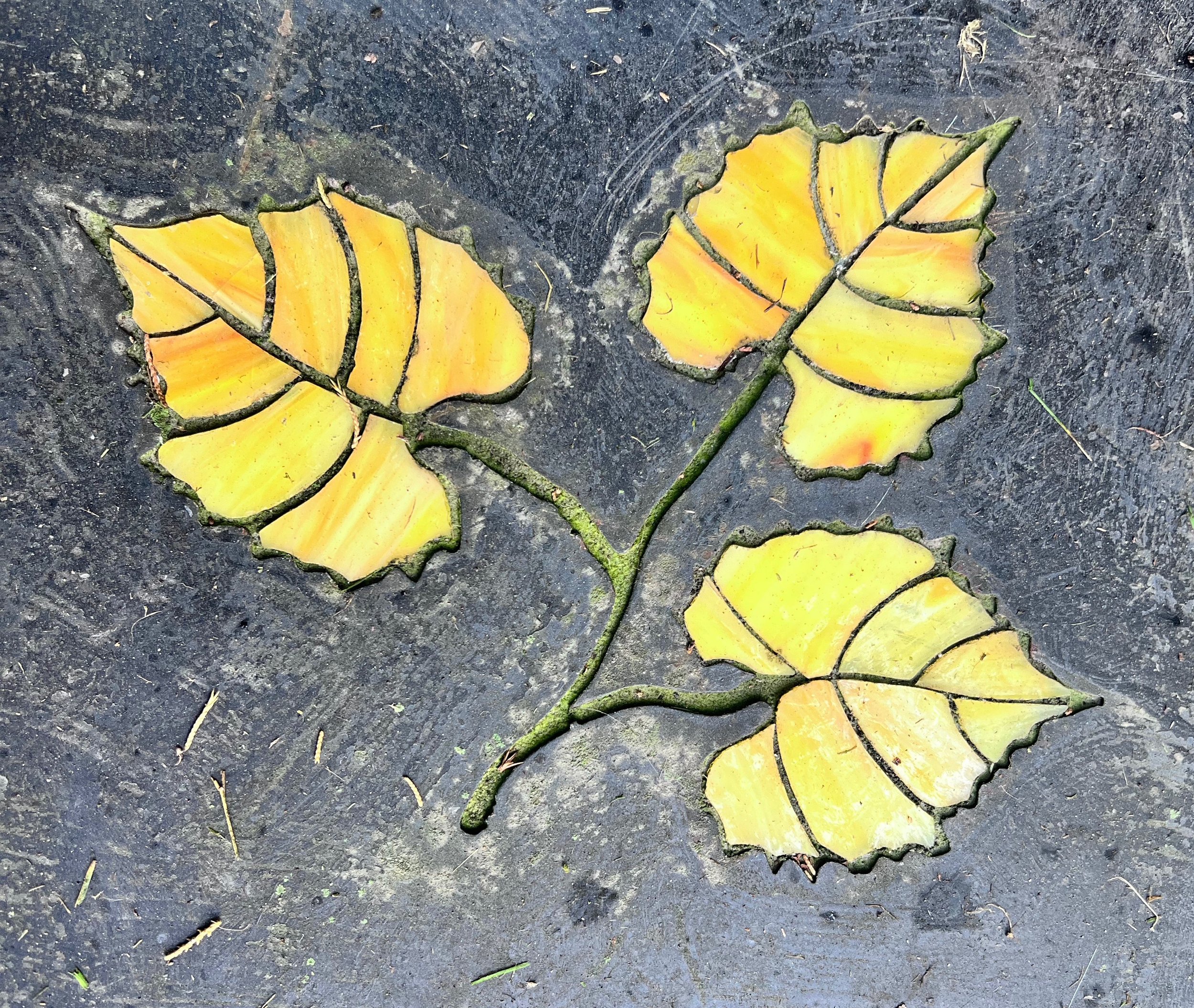 On our morning walk, Stitch and I discovered a path new to us. It circumvents what seems like a small, unused corner park on the outskirts of our small town. We’ve lived here for 23 years and discovered for the first time the path that follows a small stream, passes a community garden tucked into the park’s depths, leads to a large playground built to resemble the town’s skyline, includes a beautiful mosaic area for meditation, and then circles back to the corner walk after a mile of peaceful settings.